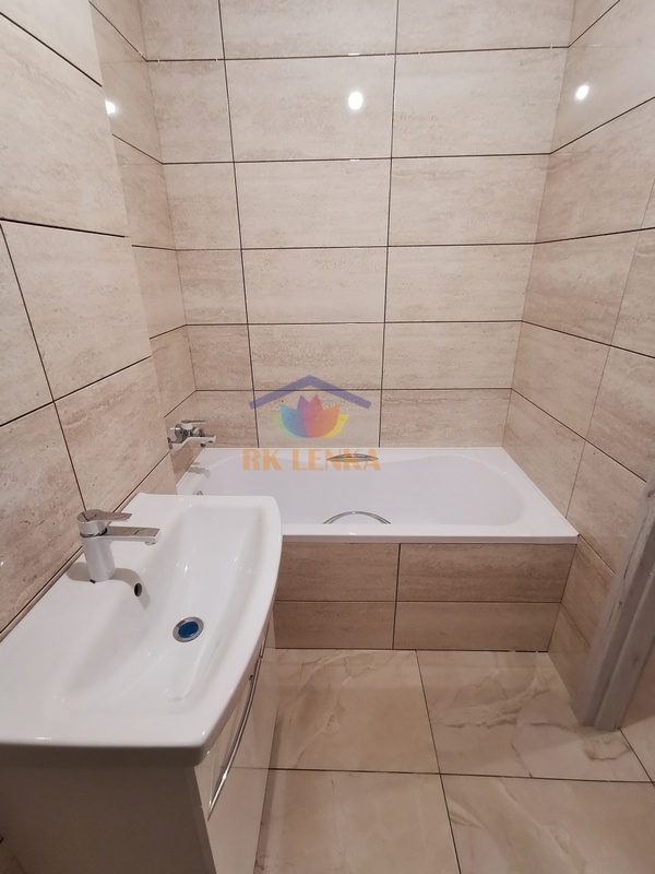 Chodba, kuchyně a koupelna mají keramickou dlažbu, stejně tak i koupelna